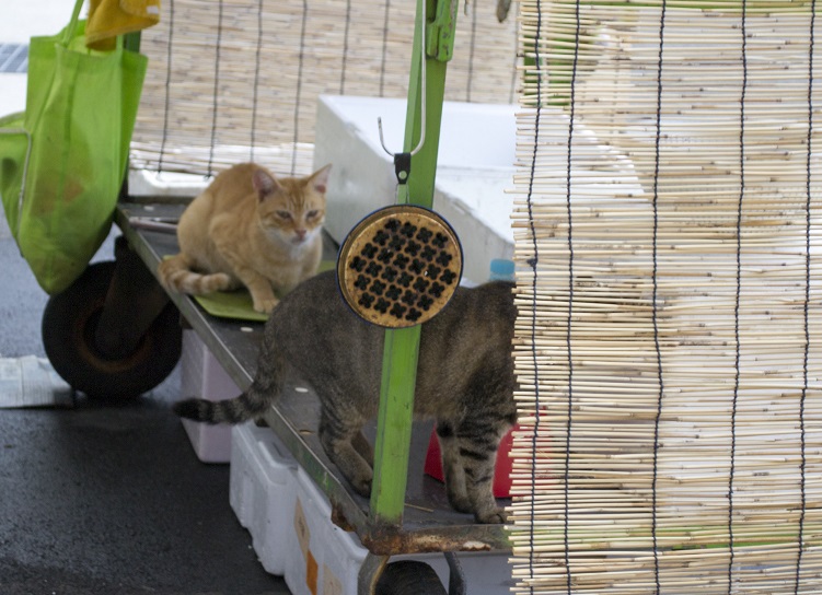 イカの露店販売。手前のぬこが窃盗してる